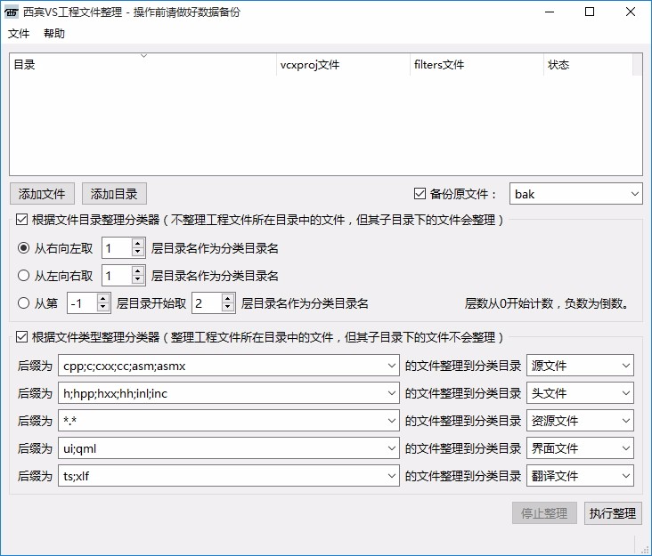 支持对指定目录中的多个VS工程文件进行整理