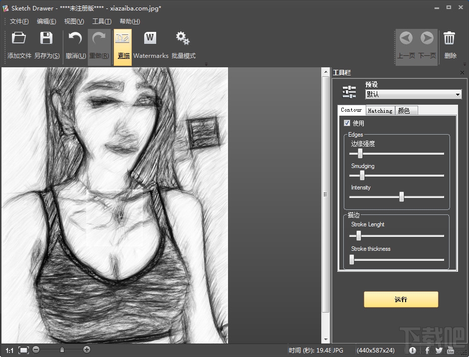 SoftOrbits Sketch Drawer(又名SoftOrbits Photo To Sketch Converter)是一款可以将您的照片转换成素描图片的软件。Sketch Drawer 体积小巧,使用也是及其方便,只需要打开一张图片,移动滑块,直到得到喜欢的结果,并点击“保存”,就可以得到想要的素描。Sketch Drawer 含有多种预置功能,可在短短的几分钟内将照片制作成钢笔或铅笔素描、彩色图纸、水彩画等。当然 Photo to Sketch Converter 还具有批处理能力,使用相当方便。需要的朋友们就赶紧来下载试试吧