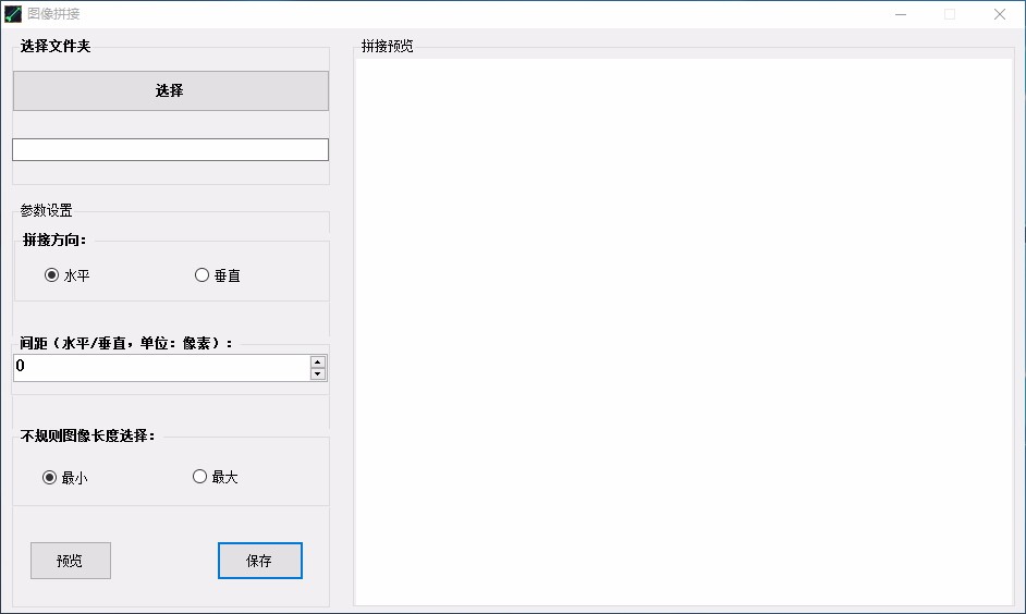 图像拼接工具是一款非常简单且实用的图片拼接软件,顾名思义使用该软件可帮助用户快速将图片进行拼接,其具备了简洁直观的操作界面,以最简单的方式帮助您拼接图片,您只需选择需要拼接的图片,对其参数进行设置,包括拼接方向、间距、不规则图像长度等,一键即可按照预设选项拼接图片文件,在保存拼接的图片文件前,您可对拼接的图片文件进行预览,满意预览效果后再进行保存,若不满意预览效果,则返回修改参数设置,直到您满意为止,这么好用的软件赶快下载试试吧!