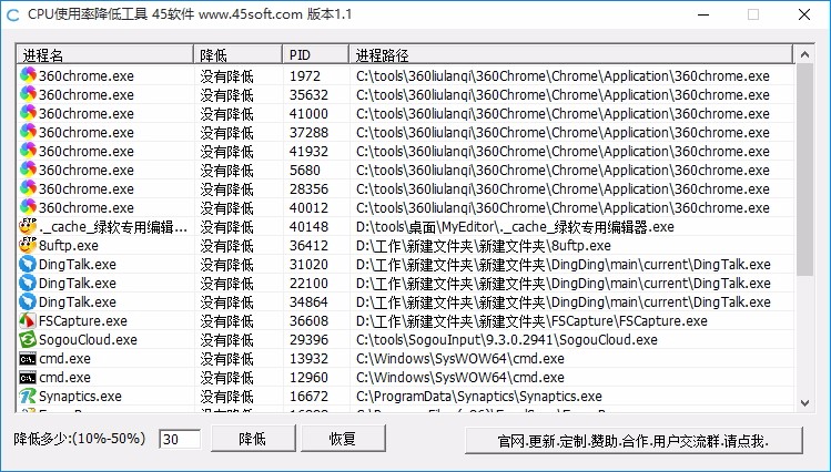 cpu使用率降低软件是一款非常简单且实用的CPU使用率降低工具,顾名思义通过这款软件可帮助用户快速将系统正在运行程序CPU使用率进行降低,当您打开很多程序后,有的程序占用CPU资源很高,这很有可能会影响到您正常使用电脑,或者您可能不想让某个程序占用CPU,这时候就可以用到这款软件,帮助您轻松降低某个程序的CPU使用率,从而能够有效降低程序的使用效果,为CPU腾出更多的运行空间,对于电脑配置低的用户来说非常有帮助,使用起来也很方便,欢迎有需要的用户下载体验