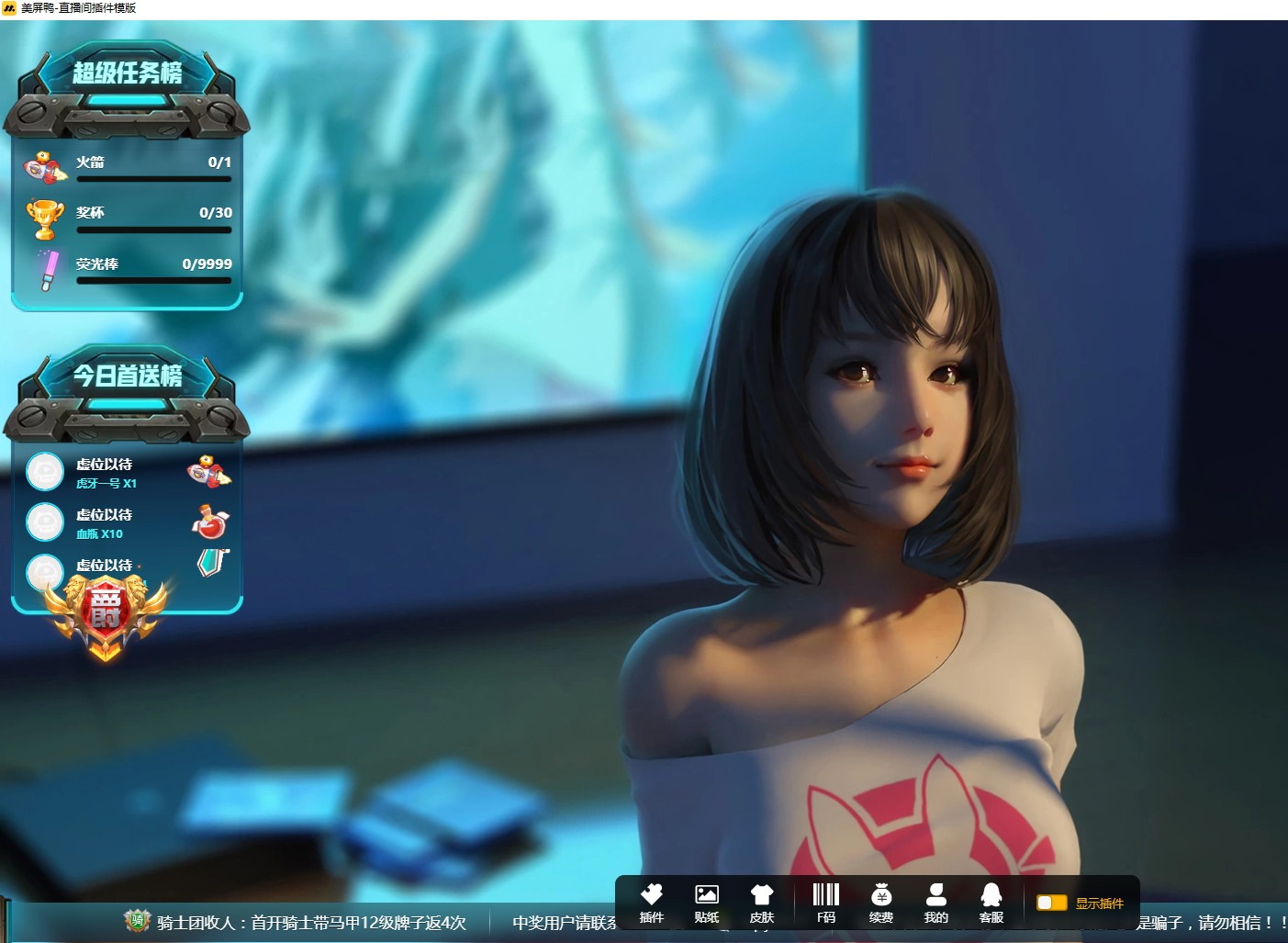 横滚通知:可以设置房间的福利和公告,比如开通贵族返续费等,超出的内容会横向滚动。