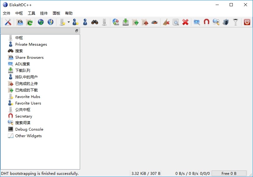 EiskaltDC++是一款功能丰富齐全、专业实用的跨平台文件共享软件,使用这款软件用户可以直接连接NMDC和ADC协议,还可以与所有常见的DC集线器软件互操作,同时该软件兼容DC++、AirDC++、FlylinkDC++和其他DC客户端的所有版本,允许通过TTH搜索文件并交换这些文件而无需连接到任何集线器,当用户Wi-Fi路由器支持此功能时,可简化网络连接配置;EiskaltDC++内置丰富齐全的聊天功能,支持字体、昵称、磁铁链接和其他链接的解析,支持表情符号以及聊天搜索等操作,内置多国语言显示,支持多国用户进行使用,使用这款软件用户可以进行文件快速上传下载,非常方便实用。