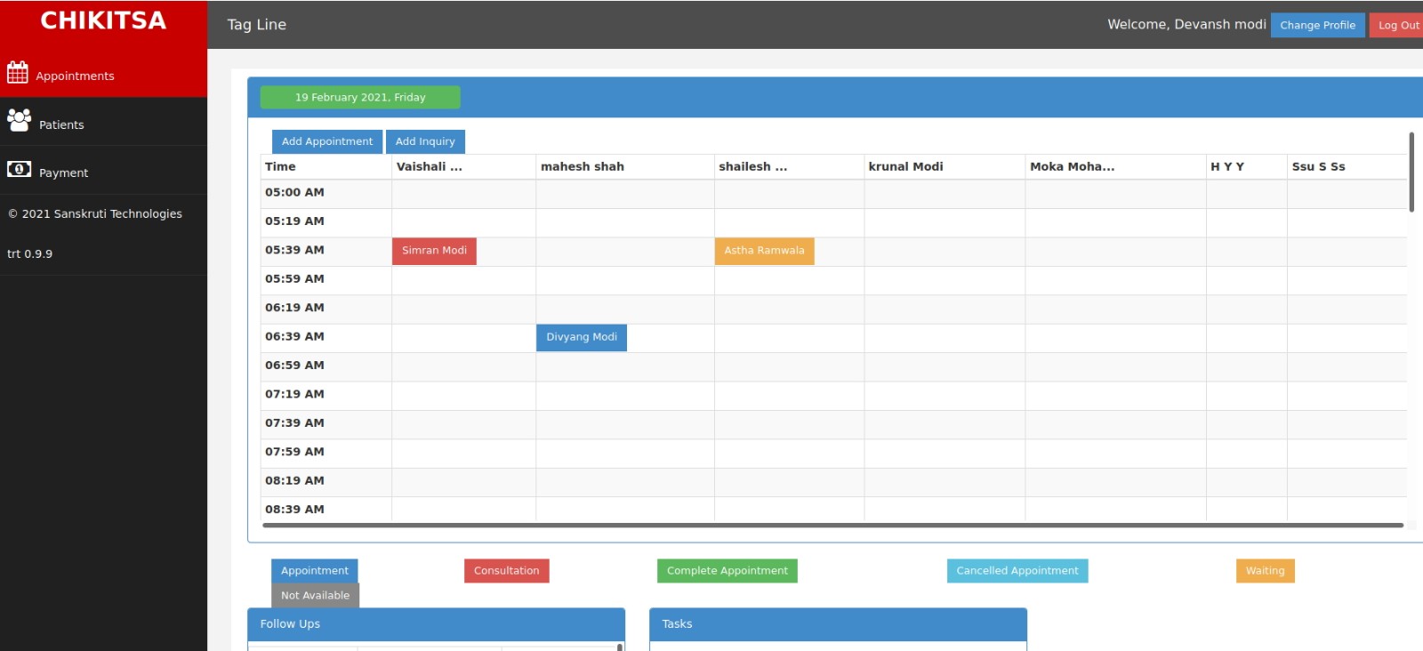 您可以在约会视图的后续小部件中看到需要呼叫以进行预约的患者列表。