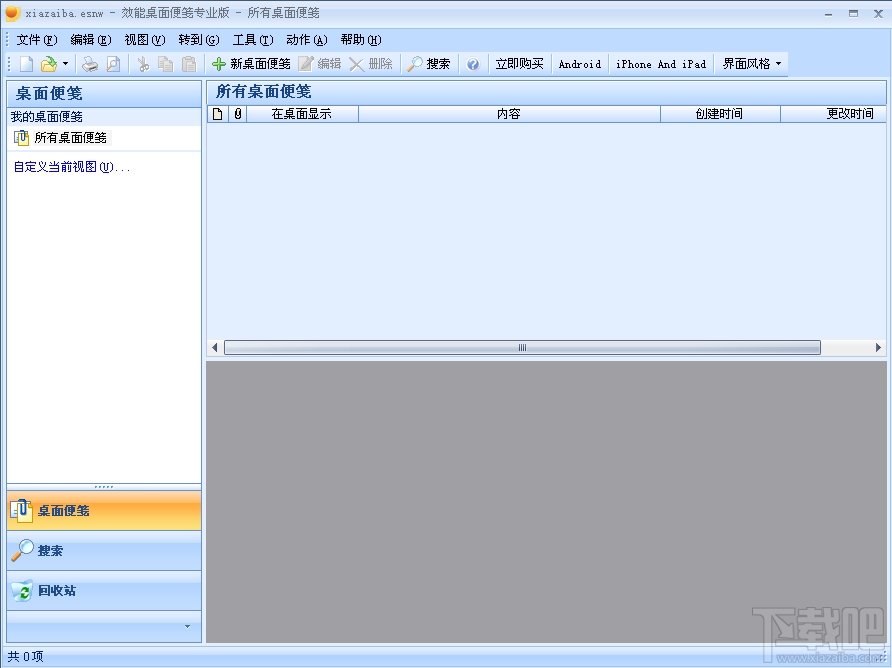效能桌面便笺让我们现在就丢掉传统纸质便笺,改用免费的效能桌面便笺软件!把您的便笺”粘”在您的电脑桌面上,随时都能够在电脑屏幕上看到您的重要信息,既节约您的金钱,又节约您的时间!效能桌面便笺允许设定多种背景颜色,背景颜色可设置为渐进效果,便笺字体可自行定义,您还可以设置半透明效果,这样便笺将不会完全遮 住您的桌面背景或图标;为了充分保护您的隐私,软件对登录密码采用SHA不可逆算法加密,对数据文件也进行了加密;软件还有设定便笺重要性,添加附件到便 笺等诸多功能。怎么样?不妨现在就一试吧!