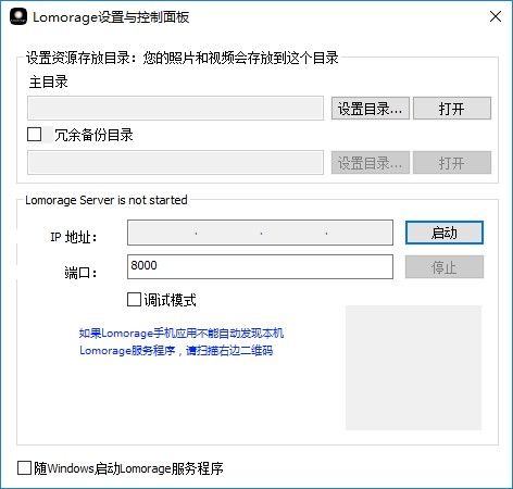 9、点击勾选左下角的选项可以随Windows启动Lomorage服务程序