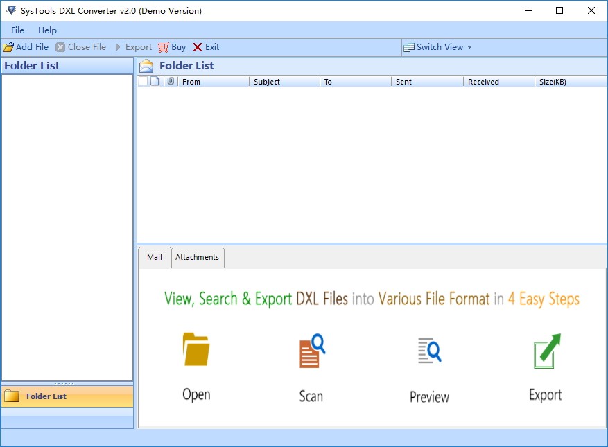 SysTools DXL to PST Converter是一款功能强大、简单专业的邮件处理软件,使用该软件用户可以将DXL邮件添加到软件上转换为PST文件格式,该软件除了可以把DXL文件的信息转换成pst格式之外,还可以创建UNI CODE类型的pst文件,非常方便实用;SysTools DXL to PST Converter支持转换无线DXL信息,可以将转换的邮件以两者文本格式进行保存,支持文件扫描和邮件本地添加,可以对导入邮件进行预览,同时可以将转换的邮件导出软件进行保存,可以说是一款非常优秀的多功能邮件转换处理软件。