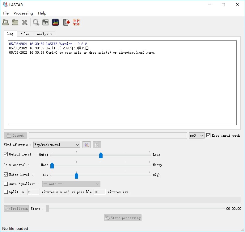 LASTAR是一款功能强大、简单易用的快速批量音频处理软件,使用这款软件用户可以添加任意格式的音频文件到软件上进行编辑处理,该软件支持音频格式转换功能,可以帮助用户进行各种音频格式相互转换,同时该软件还支持自动音频RMS正常化和分割功能,可用于自动调整响度和音频文件分割;LASTAR这款软件可以自动将一批文件规范化到给定的RMS音量,可以通过检测低电平块将音轨分割成多个,同时该软件还支持编辑处理的音频标签添加编辑,方便用户后续的音频文件的管理和使用,有需要的用户赶快下载吧。