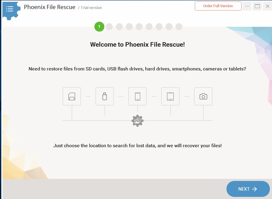 第一步很明显,没有电话数据恢复软件,您将无法做任何事情。我们建议您尝试使用Phoenix File Rescue。该程序实际上是用户友好的,并且具有直观的界面。此外,它还旨在从其他设备(例如相机,平板电脑,SD卡和计算机)定位和还原文件。它还支持所有Windows系统:从Windows XP到Windows10。只需继续从其官方网站下载该软件即可。