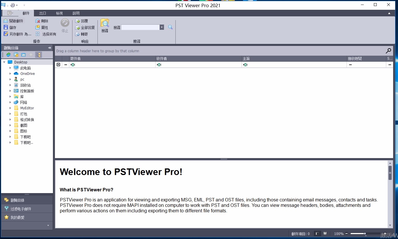 查看MSG,EML和PST格式的邮件的标题,正文和附件。