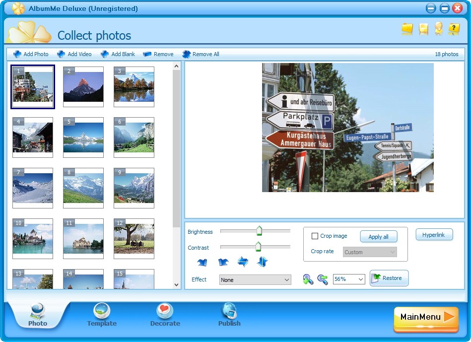 ThunderSoft AlbumMe Deluxe是一款非常专业实用的flash幻灯片电子相册制作软件,使用这款软件用户可以制作各种精美的flash电子相册和幻灯片,该软件内置丰富的动画模板和惊人的过渡效果,支持字幕、背景音乐、图片等自由添加,可让用户自由随意的为flash幻灯片电子相册添加文字字幕和背景音乐,非常简单方便;ThunderSoft AlbumMe Deluxe可以快速便捷的创建flash幻灯片,同时还支持分享发送功能,可以制作好的幻灯片作品或者喜欢的幻灯片发布到你的博客或者其他朋友,是一款非常不错的多功能幻灯片电子相册制作软件。