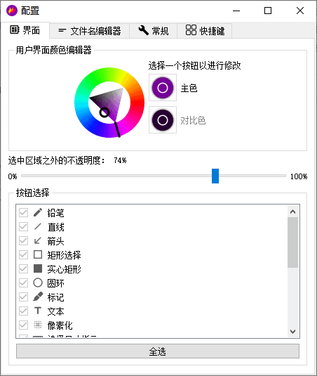 6、支持用户自定义配置截图工具的皮肤颜色。