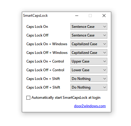 单击“登录时自动启动SmartCapsLock”,以便该应用程序自动从Windows启动。确保不要将应用程序从当前存在的目录中移出,否则必须再次单击该选项。CAPS LOCK当应用未运行时,将恢复为原始行为。