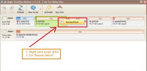 使用IM-Magic Partition Resizer Free,可以在不丢失数据的情况下缩小/扩展磁盘卷大小。您可能会减少一个很大的卷,而该卷占用的可用空间过多而没有格式化。扩展分区,保持数据不变。