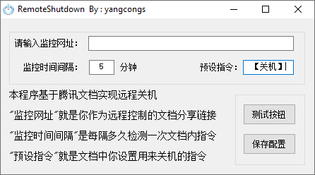 RemoteShutdown是一款基于腾讯文档的远程关机工具,该程序采用VB.NET结构开发,具有很好的稳定性;自动关机在工作中会经常使用到,不过有时自动关机并不方便,因为定时关机的时间是固定的,如果用户使用计算机的时间有所延误就会造成电脑突然关机或是需等待很久才关机;本身自动关机是为了解决用户忘记闭计算机的问题,因此用户并非每天都会用到自动关机功能;如果仅仅是偶尔忘记关闭计算机,那么这款RemoteShutdown工具将更加实用,通过该工具用户可以在腾讯文档中发送关机指令,这样即使用户不在电脑前也可以轻松控制电脑关机。