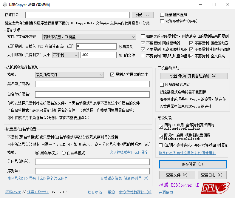 2、支持选择性复制,包括扩展名黑白名单、磁盘黑白名单。磁盘黑白名单支持序列号。