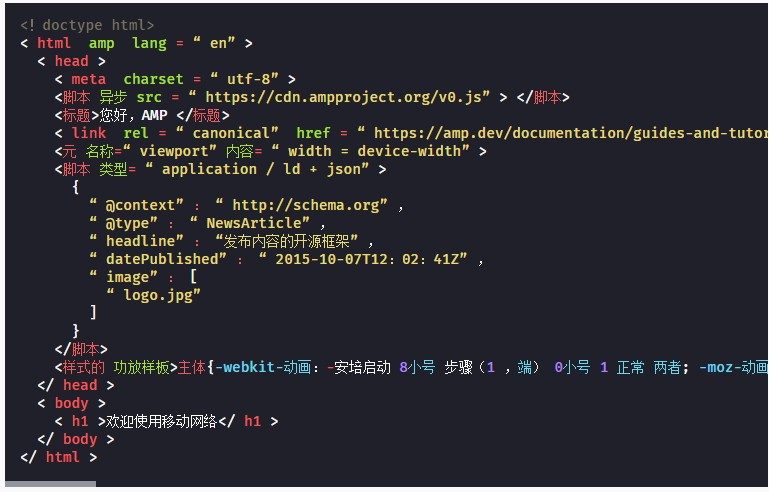 除了基本要求外,我们的示例还在头中包含Schema.org定义,这不是对AMP的严格要求,但要求将您的内容分发到某些地方(例如,在Google中搜索热门故事轮播。