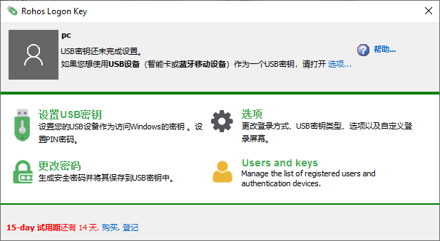 1、中文界面,使用方式简单,功能强大可以帮助用户轻松管理USB登录密钥。