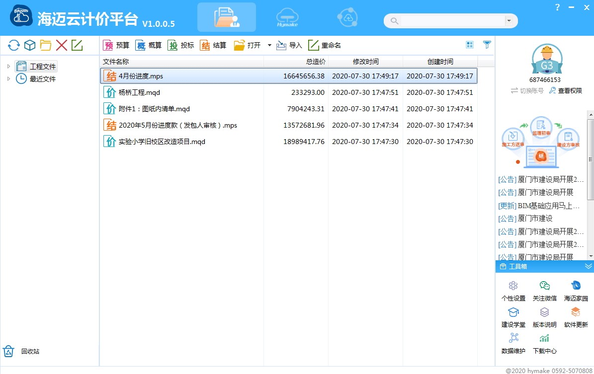 海迈云计价平台是一款功能丰富齐全、专业实用的三合一、一体化的综合计价软件,是由海迈科技官方专门为建筑工具行业研发推出的工程造价计价软件,功能强大且专业实用,具有多种工程台账模式,拥有海迈概算、预算、结算以及投标报价等多种功能,有效提高用户的工作效率;海迈云计价平台是海迈科技全新打造的工程造价计价软件,拥有自主知识产权,依托互联网+云+大数据+BIM等先进技术,支持多种工程台账管理,旨在为客户打造更便捷、更高效的工程造价计价软件,让用户更方便快捷的工作。