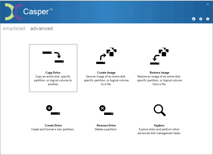 凭借其专有的SmartClone技术,Casper可以在其他备份和磁盘映像软件执行部分或增量备份到专有存档所需的相同时间内,为您的系统维护完整的备份替换硬盘驱动器或映像文件备份。