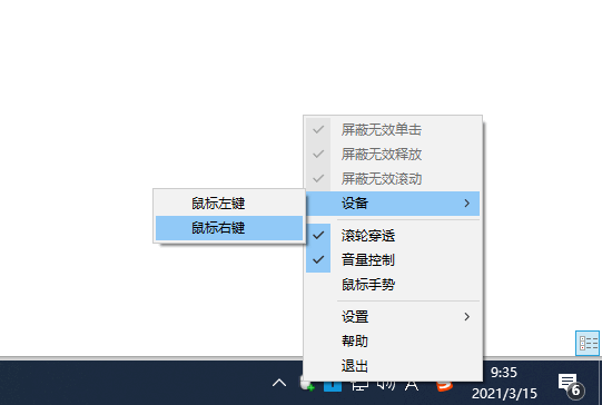 3、可以在此直接点击对应选项以开启或关闭滚轮穿透,音量控制,鼠标手势等功能。