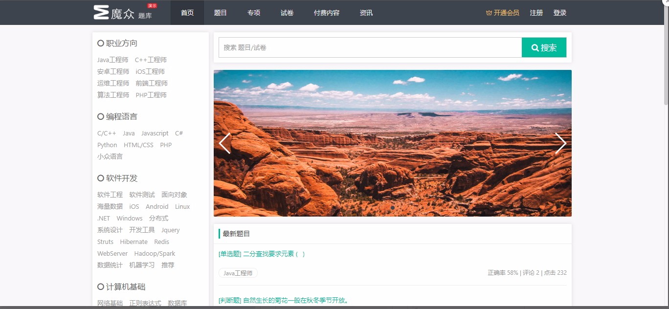 魔众题库系统是一款非常专业且优秀的在线题库管理系统,该软件采用了PHP+Mysql架构,融合了在线题库和在线考试,通过这款软件您可以查找或浏览任何您想要了解的题库,涵盖了不同领域、不同行业的专业知识,支持搜索功能,您可直接输入题目或试卷进行搜索,快速查找您需要的题库,您还可以管理题库,包括试卷管理、数据管理、系统管理等,从多方面满足您对题库管理的不同需求,除此之外还可进行在线考试,对您所学的知识进行考核,直接了解自己的学习情况,欢迎有需要的用户下载体验