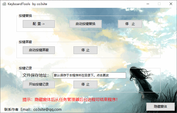 3、按键记录:启动后实时监控电脑上按了哪些键,自定义记录文件保存位置。