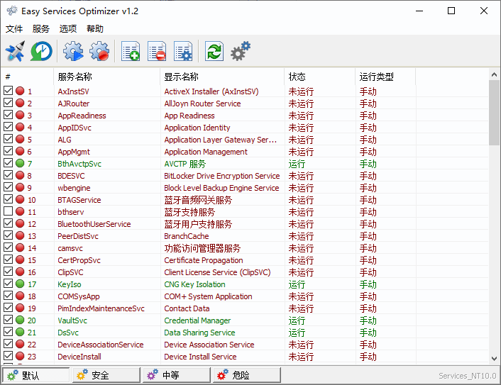 Easy Services Optimizer是一款简易的系统服务优化工具,用户可通过它管理系统中的各种服务;在计算机中很多系统服务是我们不常使用的,如果任由这些服务运行会造成计算机资源浪费,甚至会导致用户的隐私泄露;比如蓝牙服务,远程桌面和远程注册表等服务都可能会对我们的用户数据构成威胁,所以在不使用这些服务的情况下建议用户将其禁用;虽然在计算机中也可以直接管理系统服务,但相比较这款Easy Services Optimizer来说,系统自带的服务管理功能并不是很好用,在系统自带的服务管理中用户无法批量操作,而通过这款工具则可以轻松实现;需要的小伙伴赶紧下载吧。