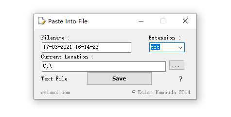 Paste Into File是一款简单实用的复制内容另存工具,它可以帮助用户将剪切板中复制的图片或文本另保为txt、html、css以及bmp、gif、ico等格式的文件;一般情况下,用户要将复制的内容保存为其它格式的文本时需要经历复制内容、打开文本创建工具、粘贴内容、然后保存文件;虽然这种方式看似简单,实际上却很麻烦,因为不同的文件需要使用的创建工具不同,因此采用这种方法用户就需要在电脑上安装很多软件;而通过这款Paste Into File工具,用户则能够在不需借助其它工具的情况下直接生成指定的文件。