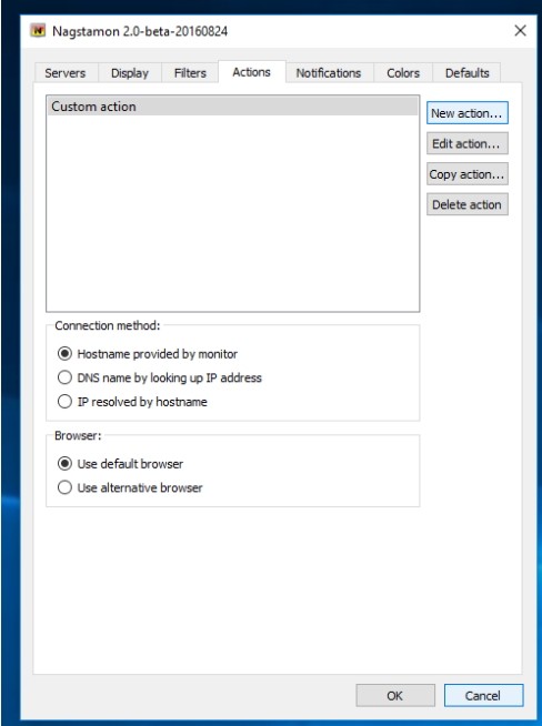 如果操作仅适用于服务或主机,则可以设置其目标。可以选择使用正则表达式来过滤掉主机和服务,以使动作菜单尽可能地可用。弹出窗口的行为也可以设置-如果保持打开状态,则可能会覆盖新的终端窗口。