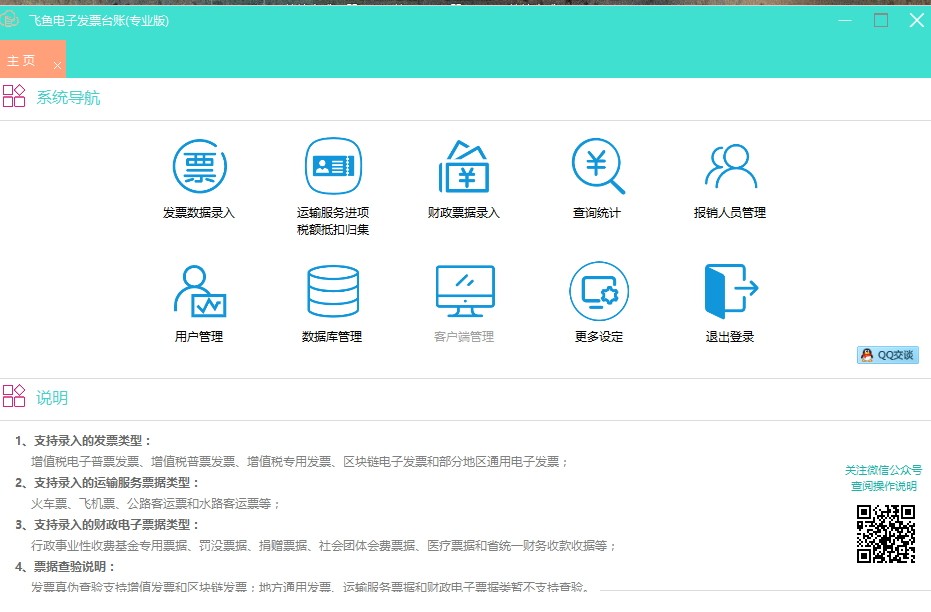 飞鱼电子发票台账是一款功能强大、专业实用的电子发票报销管理软件,支持发票数据录入、财政票据录入、查询统计、报销人员管理、用户管理、数据库管理等多种功能,让用户可以专业便捷的电子发票信息录入和管理,非常适合商品行业的用户进行使用;飞鱼电子发票台账管理软件功能丰富齐全、简单易用,支持手动发票信息录入和扫描录入,用户可以通过扫描枪或者微信扫描内容进行发票数据录入,非常简单方便,极大减少用户票据数据的录入时间,大大提高用户的工作效率。