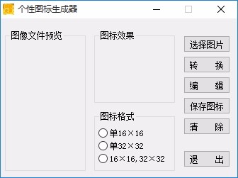 个性图标生成器是一款非常简单且实用的图标生成软件,该软件的主要功能就是帮助用户快速生成个性图标,使用该软件您可以将多种不同格式的图片文件生成ICO图标文件,如果您想要为您的软件制作出非常具有个性的图标就可以用到这款软件,其具备了简洁直观的操作界面,以最简单的方式帮助您生成图标,首先选择好图标格式然后添加需要的图片后一键即可进行转换,在软件界面可直接预览图标效果,满意图标生成效果后可将该图标进行保存,便于后续使用,喜欢的话就赶快下载吧!