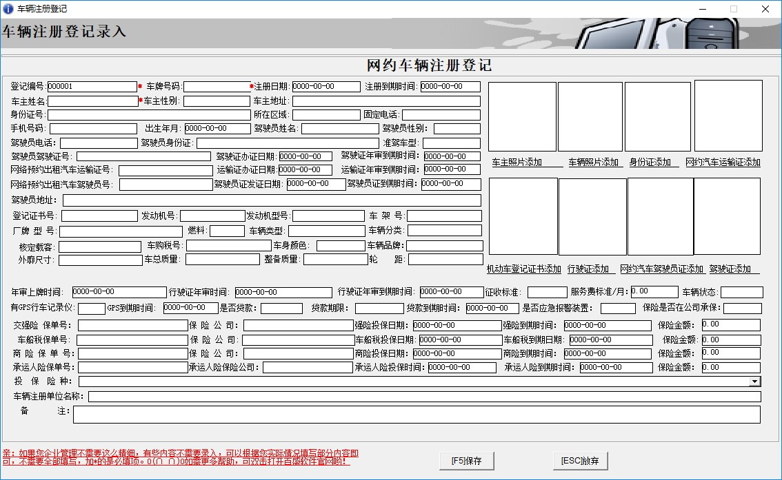 6、点击车辆注册登记录入按钮即可进行登记信息添加