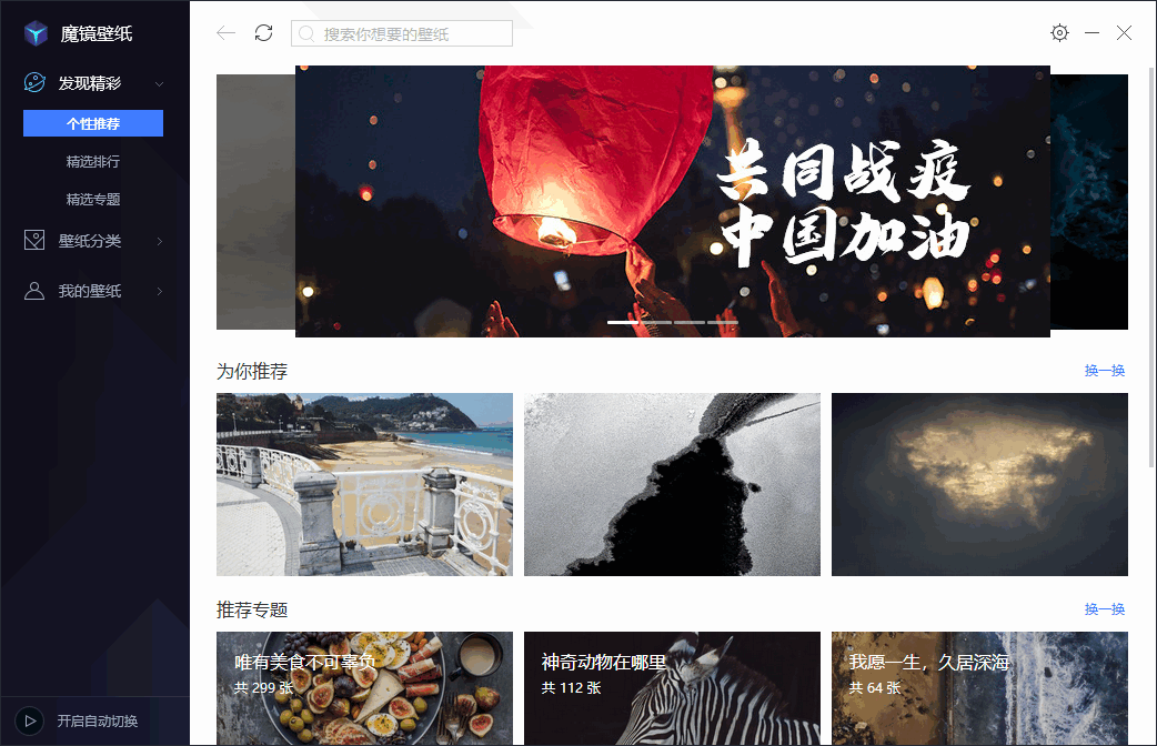 魔镜壁纸是一款多功能的壁纸工具,用户可以在这款工具中找到各种风格的壁纸;除切换壁纸以外,该软件还具备文件搜索功能和桌面整理功能,可以帮助用户去除应用程序的箭头图标,隐藏系统文件,检索计算机中保存的文件等等;这款工具非常实用,无论对用户美化桌面还是日常办公都可以提供一定的帮助;魔镜壁纸中所提供的壁纸均来自Unsplash网站,所有壁纸都拥有高清质量,兼容计算机分辨率,不会出现图像模糊的情况;软件安全绿色,需要的朋友欢迎在本站下载使用。
