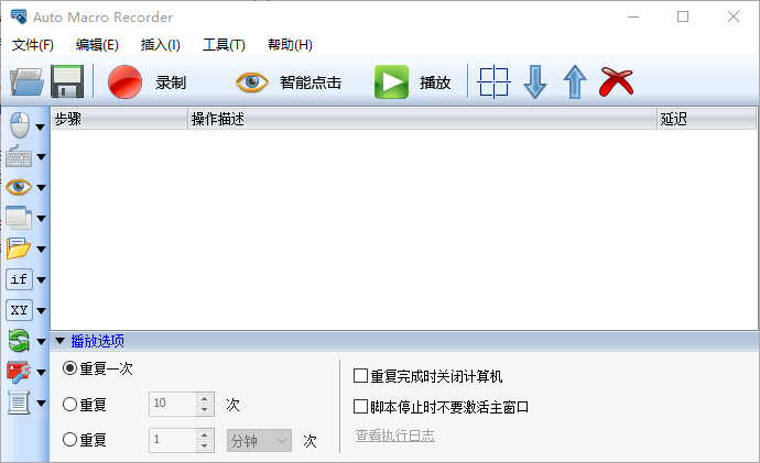 Auto Macro Recorder可帮助用户实现电脑自动化,让电脑自己完成一些繁琐或重复性的点击工作;这款软件主要通过录制鼠标点击和键盘的活动规律来创建自动化点击任务,它可以记录鼠标移动轨迹和键盘按键顺序,用户录制完成后设置循环次数就可以开始运行任务,软件会根据用户设置好的参数在电脑上自动运行而无需人为操作;Auto Macro Recorder拥有灵活及丰富的功能选项,您可以通过它编辑脚本,将脚本绑定到热键上,还可以使用智能点击功能查找和点击桌面上的图像;这是一个很实用的自动化工具,即使没有编程基础也可以很轻松的创建自动点击任务,需要的朋友赶紧下载吧。