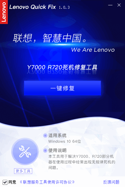3、软件仅针对Y7000 R720机器死机问题修改对应的注册表,不会破坏其它注册表。