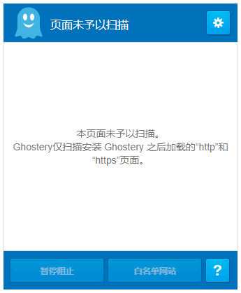 7、点击暂停阻止按钮, Ghostery将暂停所有阻止。再次按一下按钮可恢复阻止。