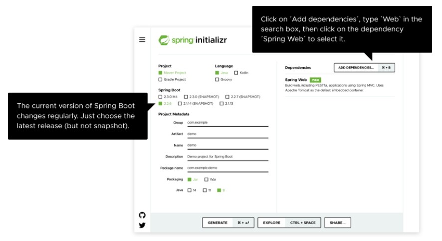 创建的项目 start.spring.io 包含 春季靴,这是一个框架,可让Spring准备在您的应用程序中工作,而无需太多代码或配置。Spring Boot是启动Spring项目的最快,最受欢迎的方式。