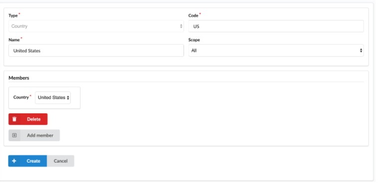 最后的配置步骤是创建区域。出于各种原因使用它们,例如运输和收税操作,并且可以包含国家,省或其他区域。