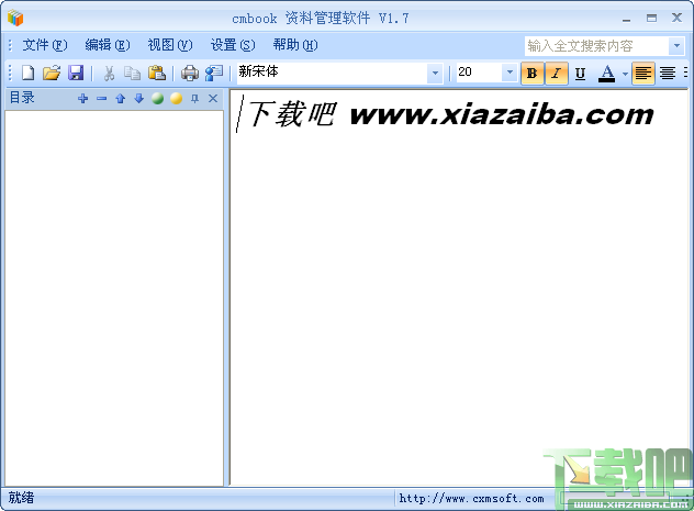 cmbook资料收集管理软件,软件功能简单,界面清爽,单文件绿色版,支持全文搜索。