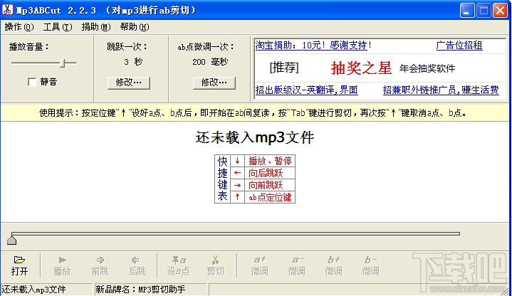 2.1 MB/2020-08-17AbsoluteMP3Splitter&Converter是一个强大的音频分割、合并与转换软件,它可以分割一个较大的音频文件为多个较小的片断,并且同样能合并多个音频文件为一个较大的文件。