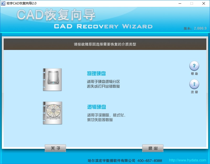 宏宇CAD恢复向导是一款体积轻量、简单专业的CAD文件恢复软件,通过该软件用户可以对选择硬盘内的所有CAD文件进行扫描和恢复,用户只需选择扫描恢复的磁盘和恢复介质即可快速高效的CAD文件恢复,同时该软件还支持恢复文件浏览查看功能,可让用户有选择性的进行CAD文件恢复;宏宇CAD恢复向导界面简洁直观、操作简单便捷,拥有专业高速的搜索引擎,可快速查找和恢复CAD文件,使用这款软件用户可以对误删除、格式化、病毒破坏等原因而导致丢失或损坏的CAD文件进行恢复,非常方便实用。