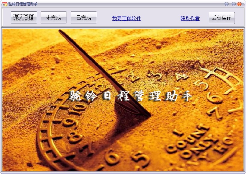 驼铃日程管理助手是一款非常简单且实用的日程管理软件,使用该软件可帮助用户快速进行日程管理,在学习工作中我们经常会为自己安排一些日程,有计划的去完成一些比较重要的事情,但是有的时候可能会忘记,小编特地推荐这款软件,可录入一些需要提醒的日程安排,包括安排日期和安排时间,当到达预设的时间后即可弹出提示窗口并显示对应的日程内容,可通过播放音乐的方式进行提醒,让您真正做到毫无遗漏,有了这款软件您就再也不用担心忘记待办事项了,需要的话就赶快下载吧!