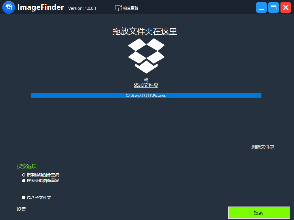 2、将需要查找的图片目录直接拖放到软件中,或者点击这个位置添加文件夹。