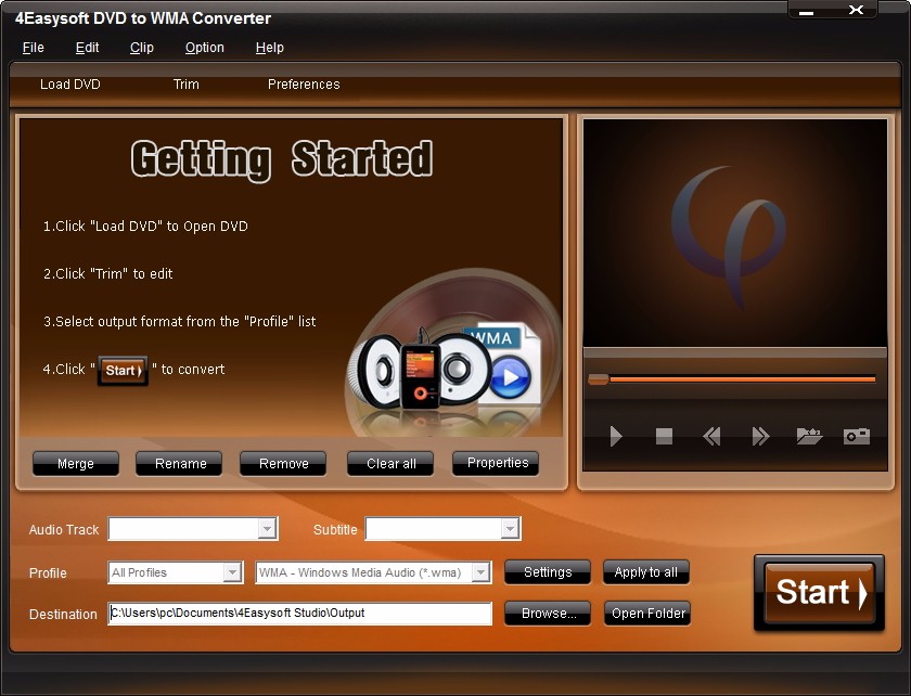 4Easysoft DVD to WMA Converter采用简单的方法来设置音频编码器,采样率,通道,音频比特率,以适合您的MP3播放器。