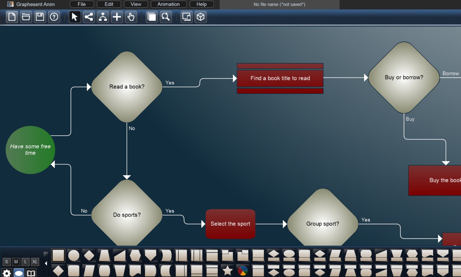 Graphesent Anim是一款功能强大、专业实用的可视化流程图设计软件,通过该软件用户可以轻松进行简单便捷图形流程图创建和编辑,利用软件内置的多种图形素材可以进行半自动化流程图设计,同时该软件还支持图片添加以及图像文本编辑功能,可以添加本地图片到软件上以及对流程图图形进行文本编辑;Graphesent Anim拥有类似于流程图、思维导图等创建设计解决方案,内置各类丰富的流程图设计辅助工具,可让用户快速便捷的进行流程图设计编辑,非常的方便实用,感兴趣的朋友可以自行下载。