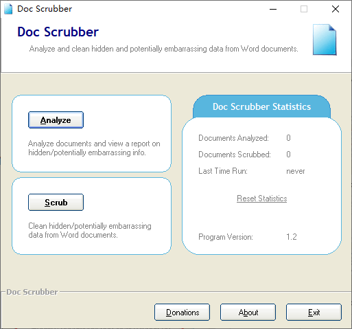 Doc Scrubber是一个用于检测和清理Word元数据的软件;doc文件中包含许多元数据信息,Word会根据您使用的配置以及相关功能将部分元数据信息隐藏起来,这类数据是无法查看的;如果用户想要查看或删除这类信息的话,就必须使用专业的软件进行查看和清理;Doc Scrubber就是这样一个简单易使用的Word元数据查看和删除软件;这款软件适用于所有版本的DOC格式,它能够帮助用户删除诸如隐藏的修订日志,标识GUID,注释,关键字以及主题等信息,有需要的朋友赶紧下载吧。