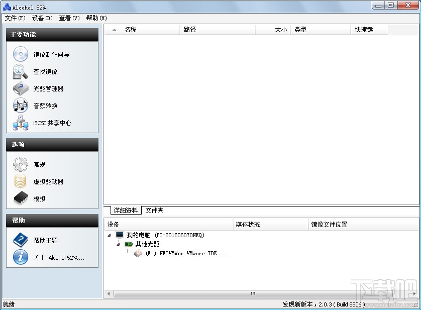 Alcohol 52%是一款虚拟光驱软件,看到这个软件的名称一定会让你想到Alcohol 120%,没错,其实在Alcohol 120%软件中便包含有Alcohol 52% 的功能了,简单来说52% 是不包含光碟刻录功能的,它可以让您虚拟模拟出CD/DVD光驱,如此你便可用它所模拟出的CD/DVD虚拟光驱来做任何CD/DVD光驱所能做的事。
