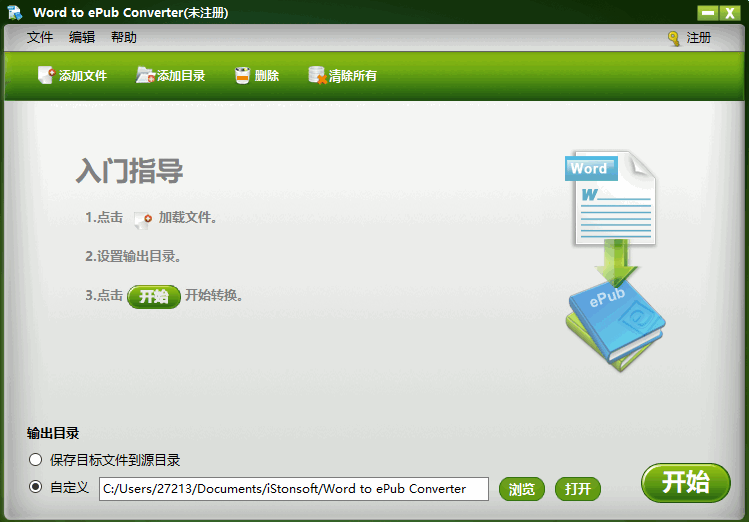 7、最后设置好文件的输出位置就可以单击“开始”将Word文档转换为epub文件了。