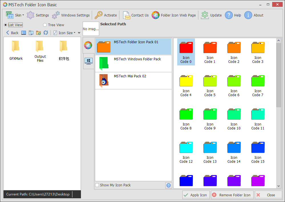 MSTech Folder Icon是一个强大的文件夹图标管理软件,它可以然让您轻松更改文件图标或切换图标颜色,使您的文件夹充满特色与个性;在这款软件中,您可以在软件的颜色包和图标包浏览您喜欢的图标样式,可以打开图标并预览它,看看它是否是您喜欢的文件夹外观,如果是就直接点击“应用”按钮快速替换文件夹图标;MSTech Folder Icon拥有很多免费图标可以使用,相比其它需要收费才可以使用的图标修改器,这款软件要更具性价比;如果您想要更换图标样式的话,那么推荐您下载这款工具。