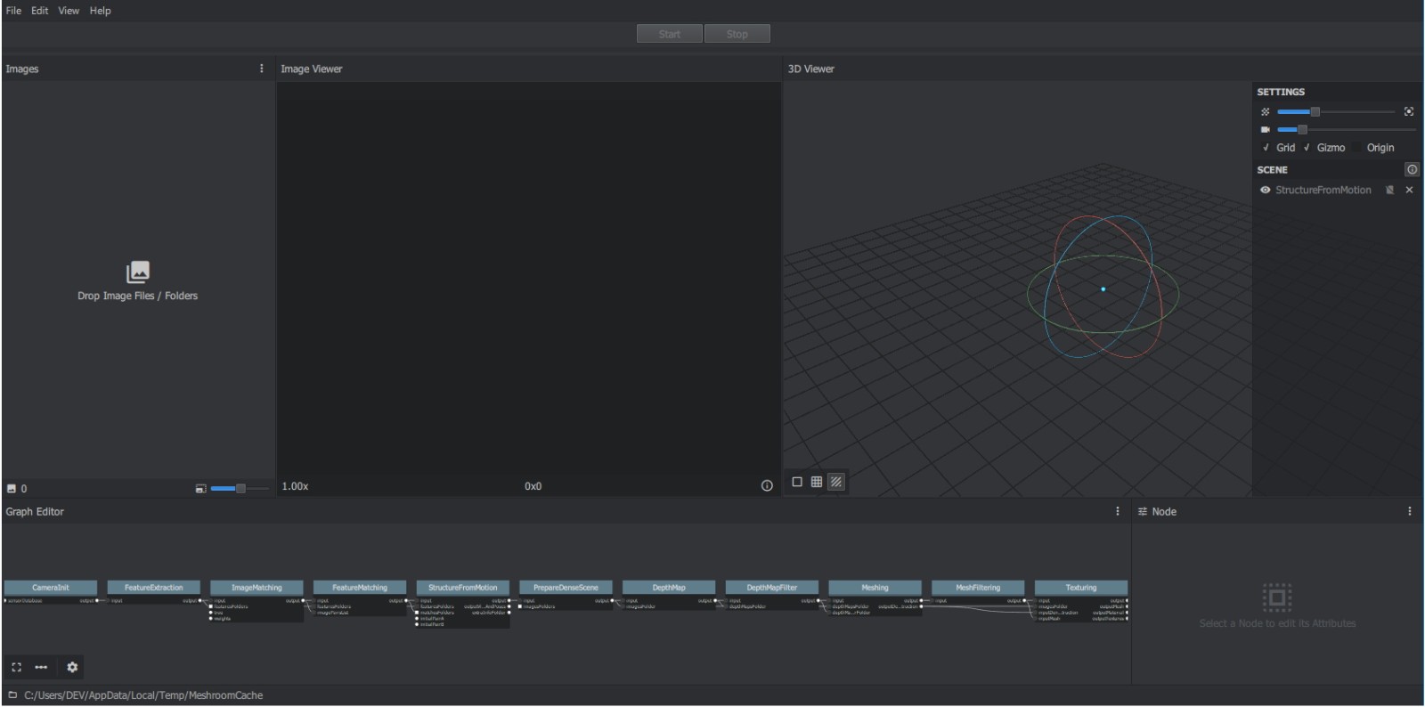 接下来,我们只需将图像拖放到左侧的“图像”区域中,即可将图像导入该项目。Meshroom会分析其元数据并设置场景。